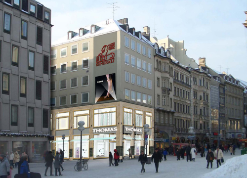 Das traditionsreiche Schuhhaus Thomas befindet sich in bester Lage auf der Haupteinkaufsstraße Münchens, der Neuhauser Straße, auf Höhe des Richard-Strauss-Brunnen. Da der Nachkriegsbau sich nicht mehr passend in den umgebenden historischen Gebäudebestand eingefügt hat, entschloss man sich im Zuge der Kernsanierung des Ladenlokals auch die Fassade komplett umzugestalten.